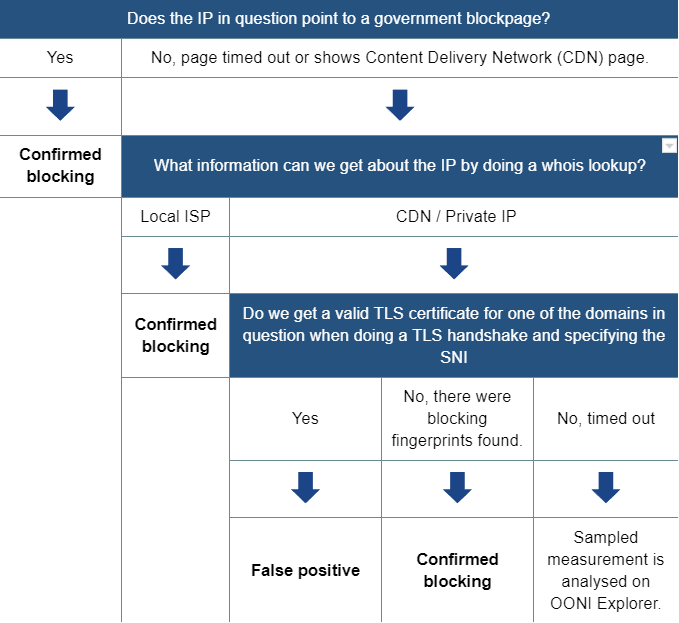 Upon collection of more network measurements, OONI continues to develop its data analysis heuristics, based on which it attempts to accurately identify censorship events.